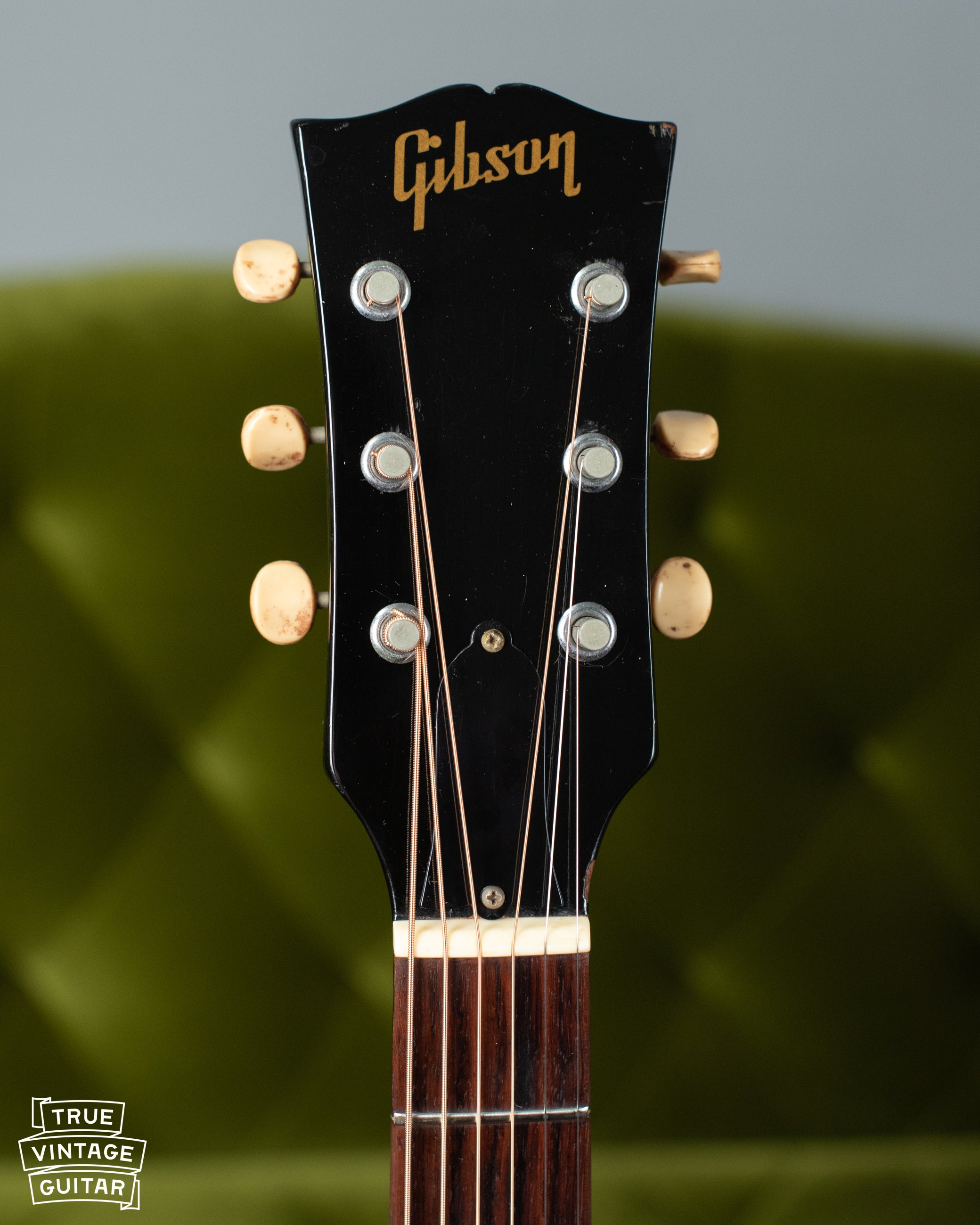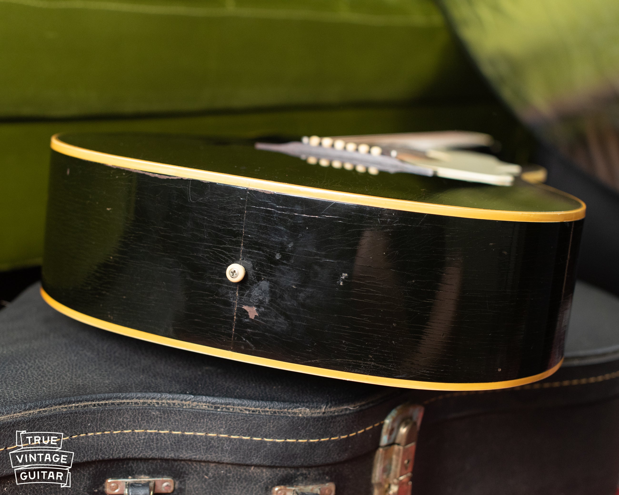 This 1968 Gibson J-45 ADJ in original factory custom color Black finish with white pickguard has just arrived from its original owner! It's a fantastic playing example with deep rumbly Gibson flat-top tone.