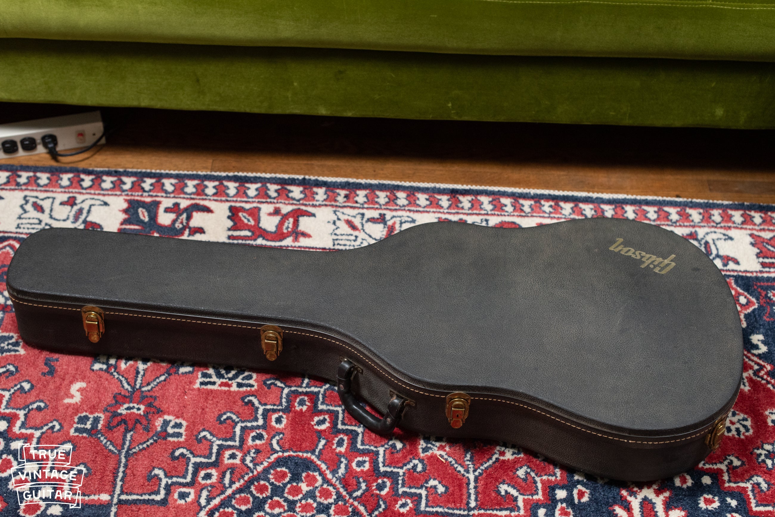 Condition: Excellent! This one is very clean with light fading in the cherry sunburst on the top. I observed very little checking. The guitar has been stored inside its case for the last 20+ years so there's a subtle musty smell. I expect it to subside if the guitar is played regularly. The original case handle is replaced with a leather handle.