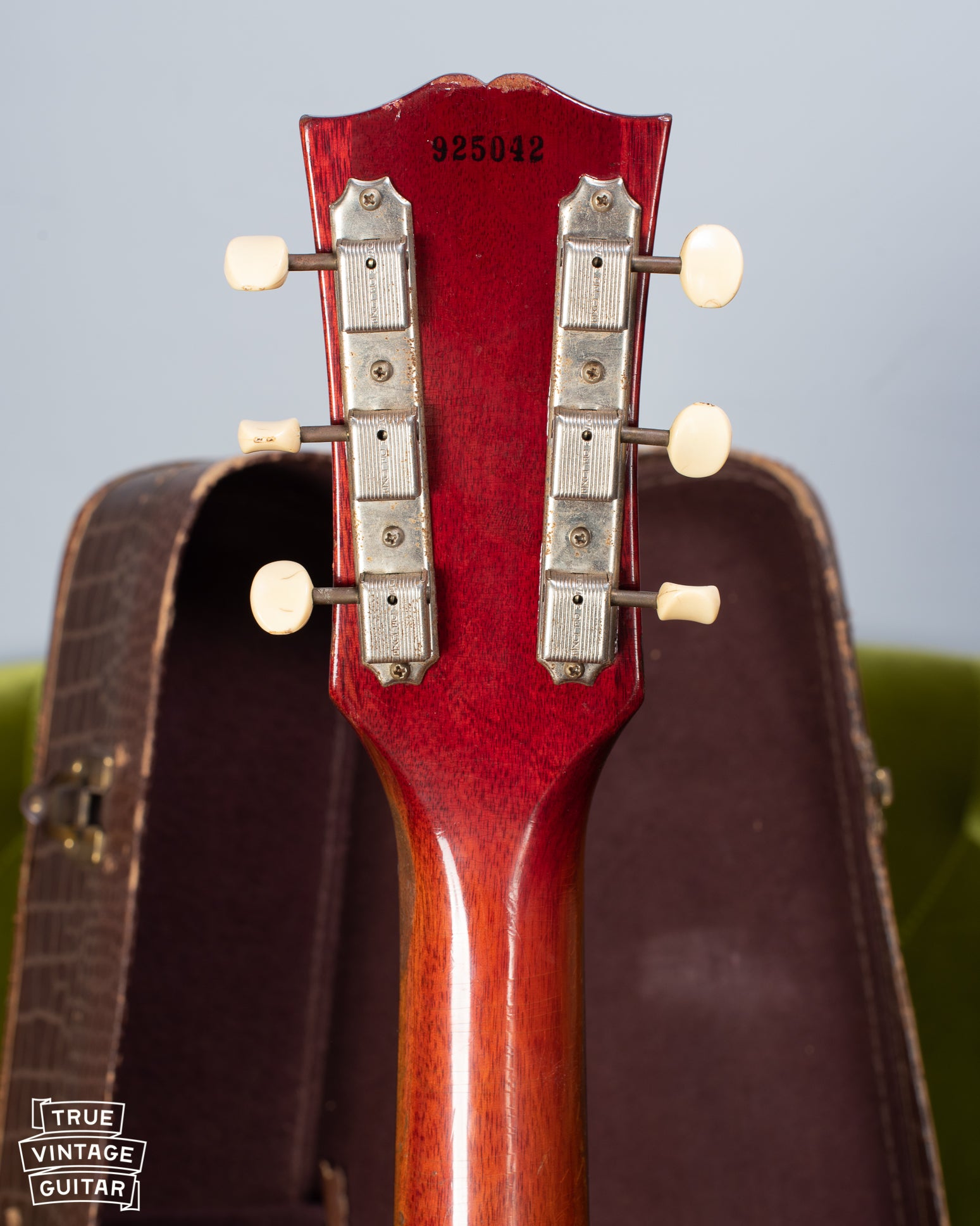 This 1959 Gibson Les Paul Junior has all the vibe and mojo of a great vintage guitar but plays like a dream! It still had the Kalamazoo, MI made Gibson flat wound strings with orange silk wraps on it when it came in.