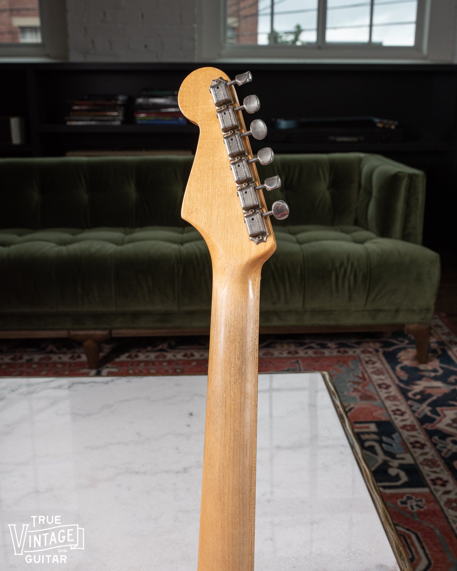 Condition: Very nice. There's a forearm wear area that's a little dull from wearing through the clear coat. The back of the neck is beautifully worn with much of the finish worn away.